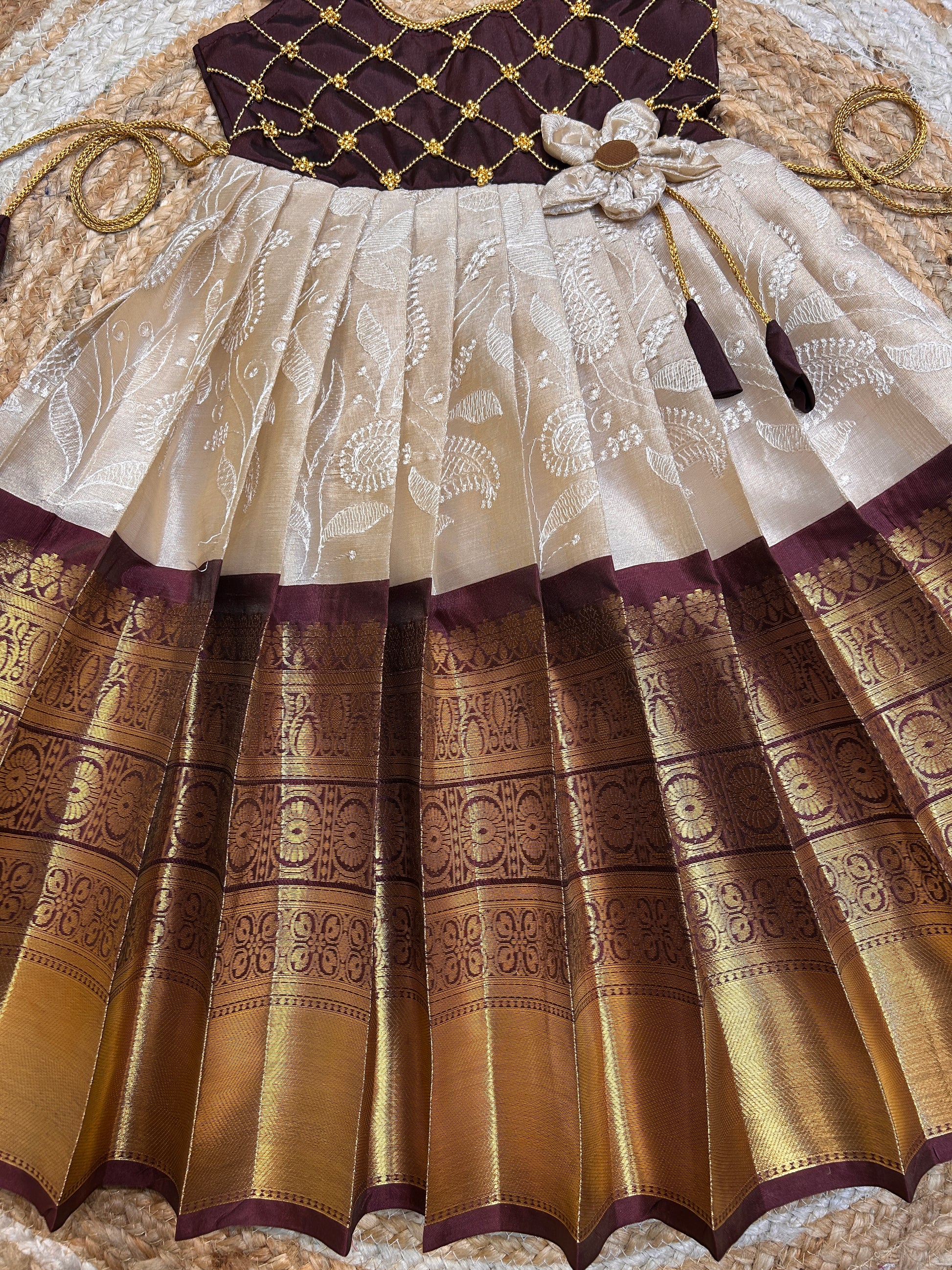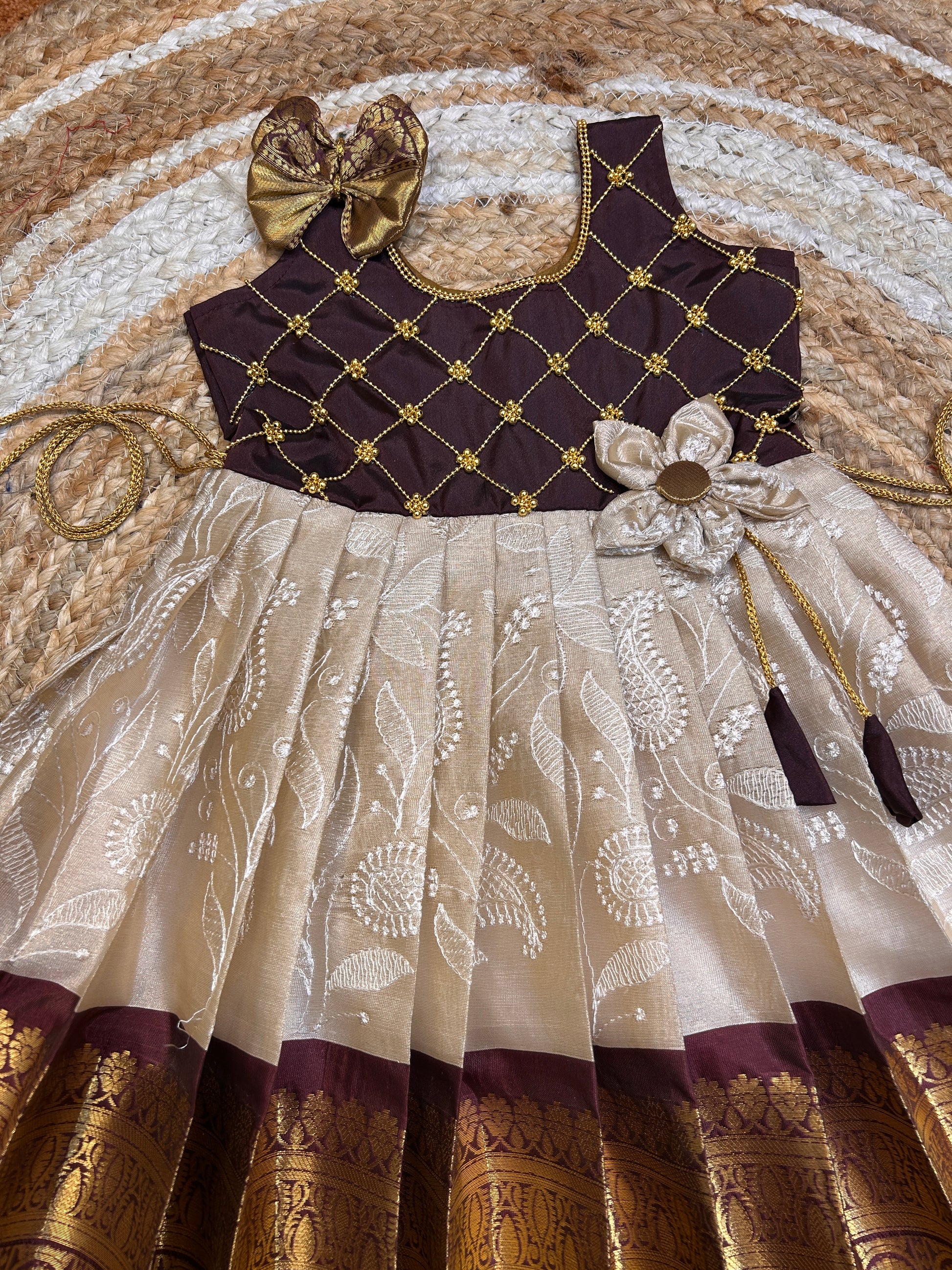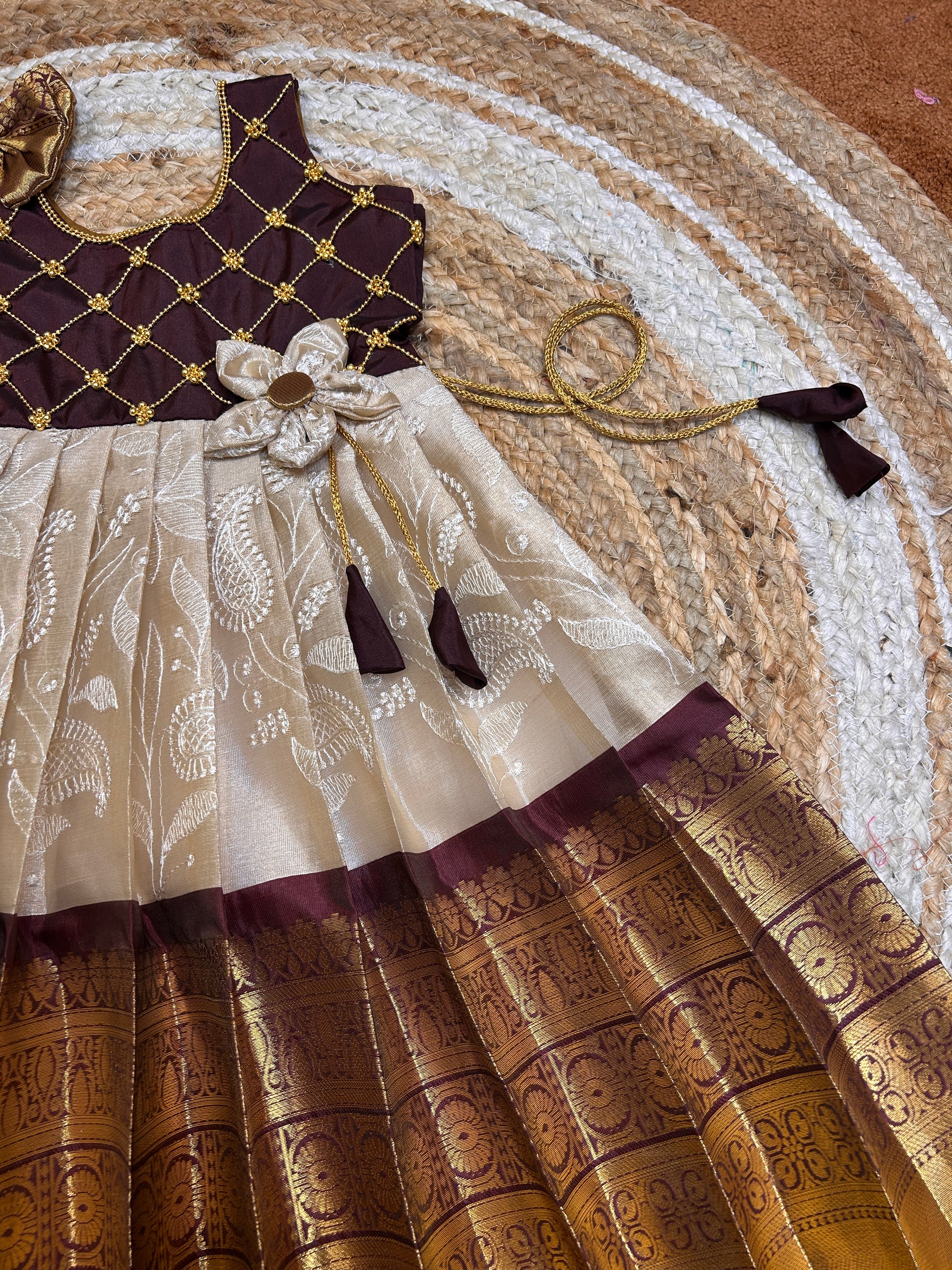 (SB493)Exquisite Brown Kanchi border silk gown with Chikankari worked full embroidery