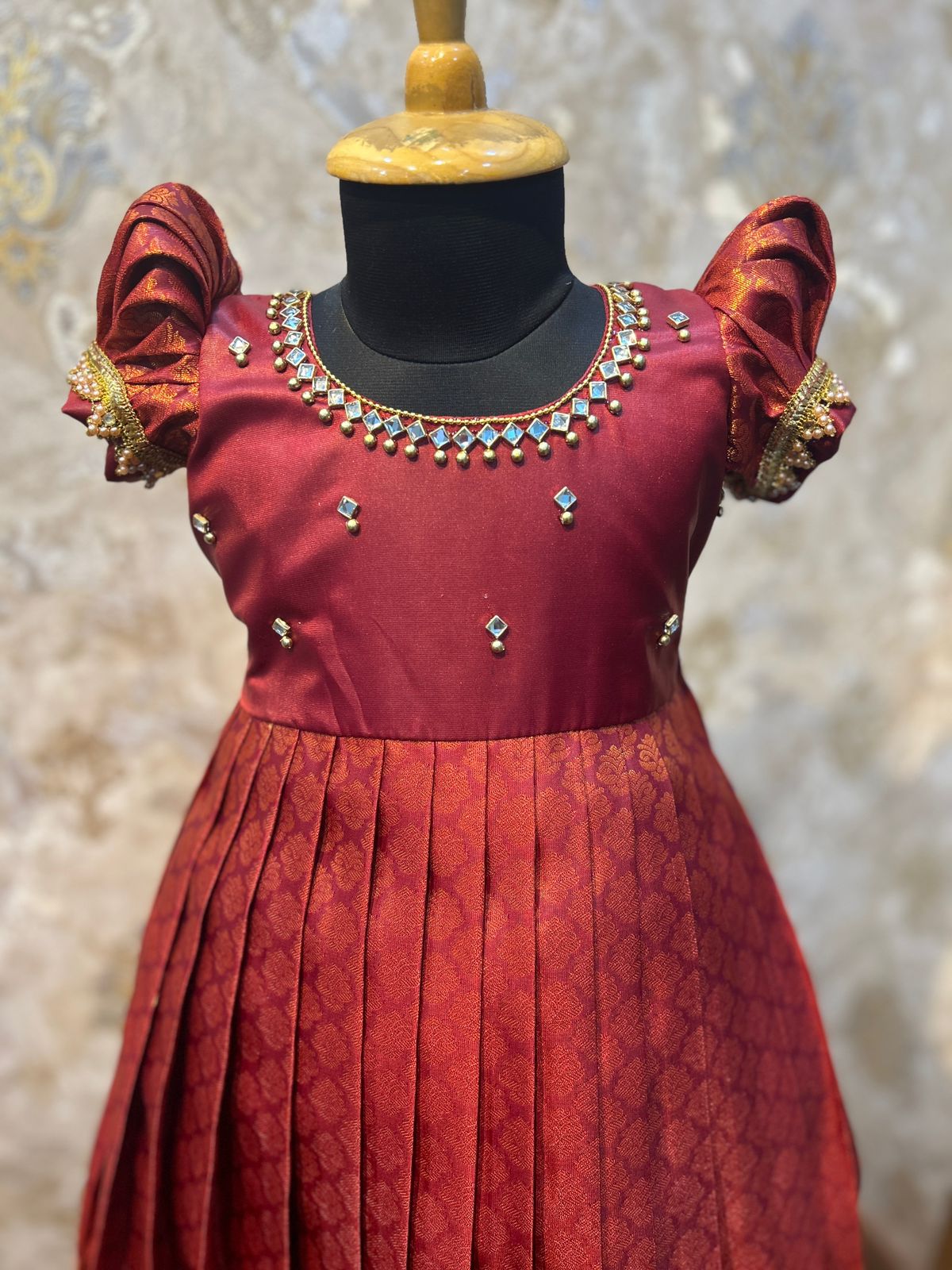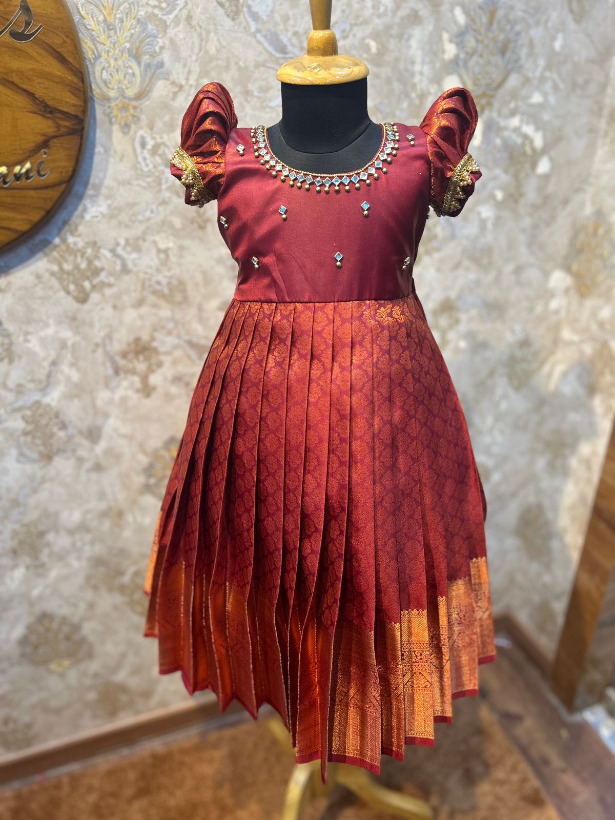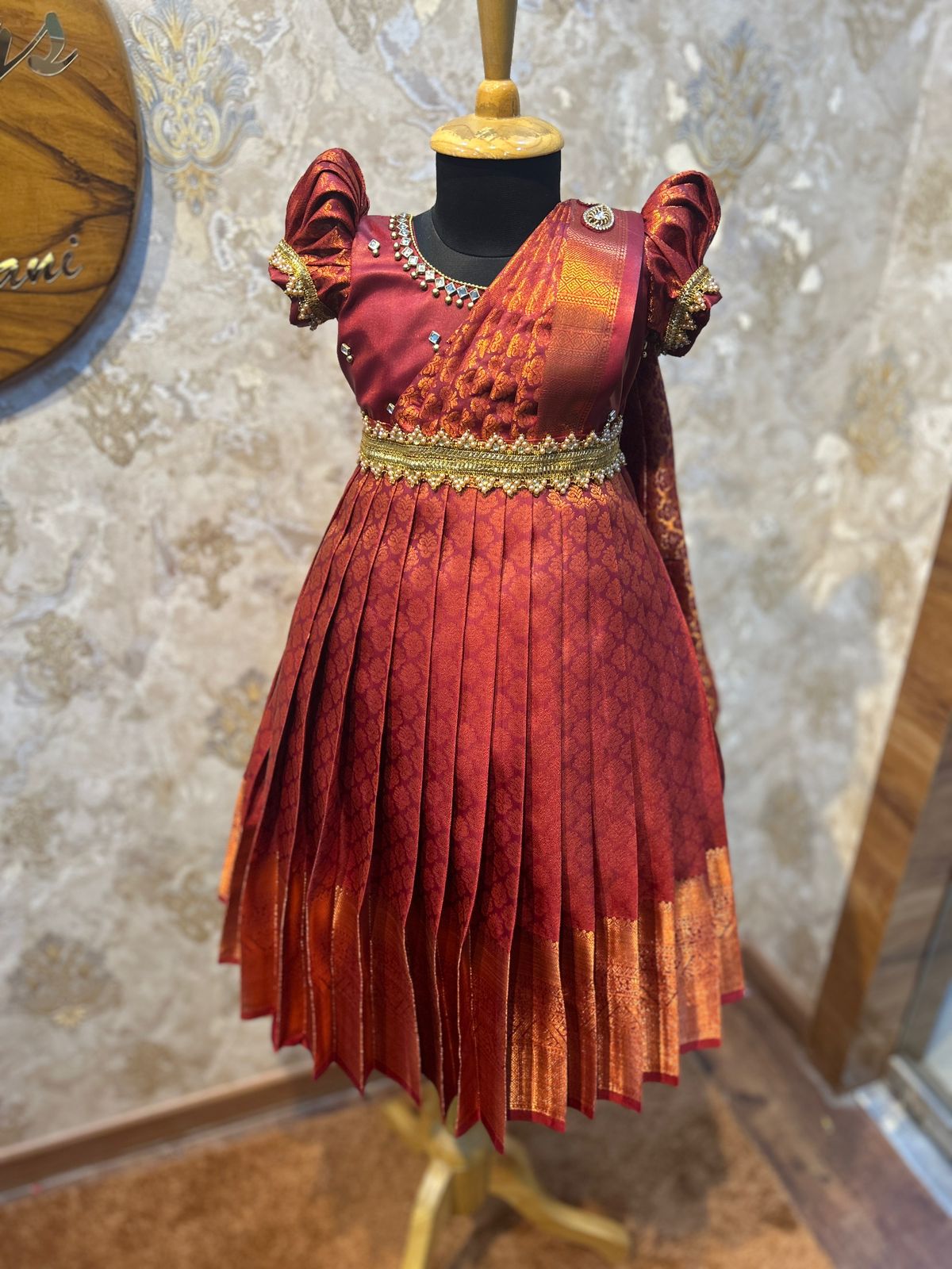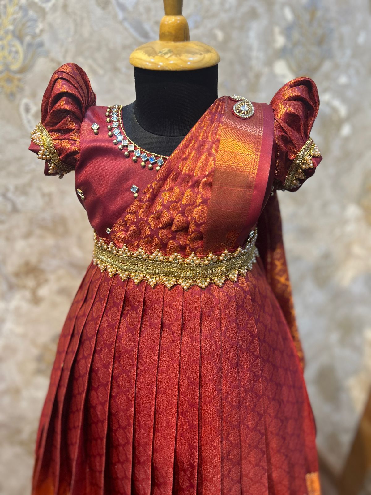 (SB449)Merun Kanchipuram Silk Gown with Removable Shawl Pattern