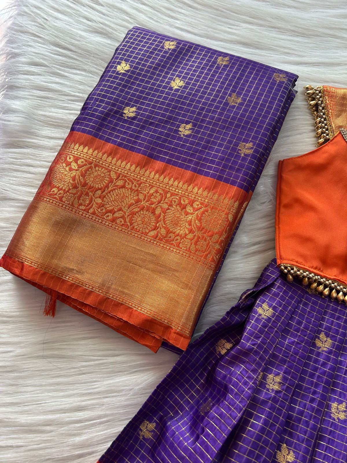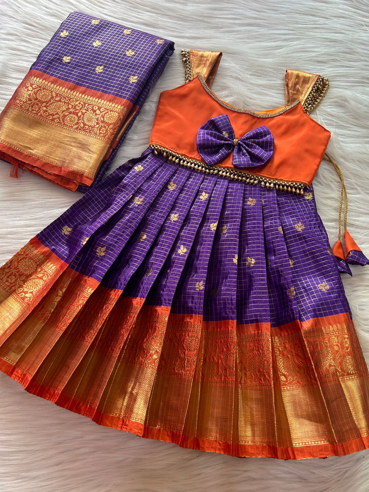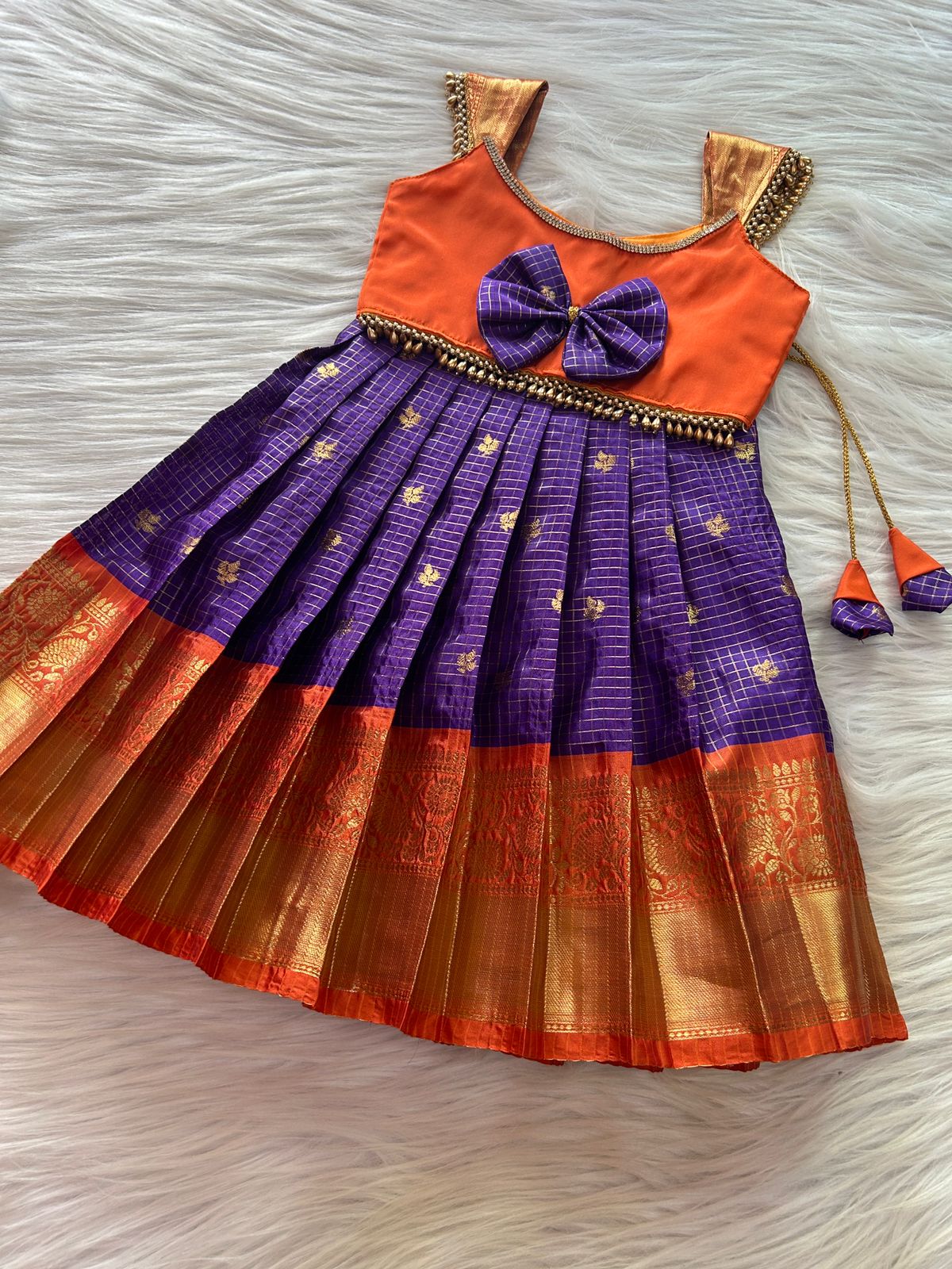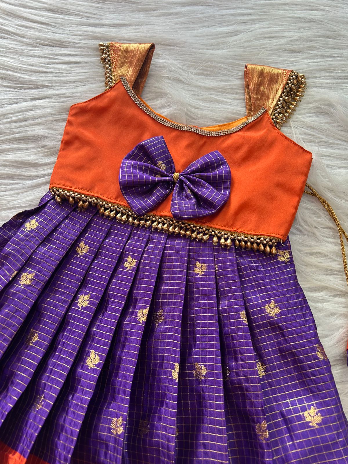 (SB452) SHINE - Purple with Orange Kanchi Pattu Pavadai