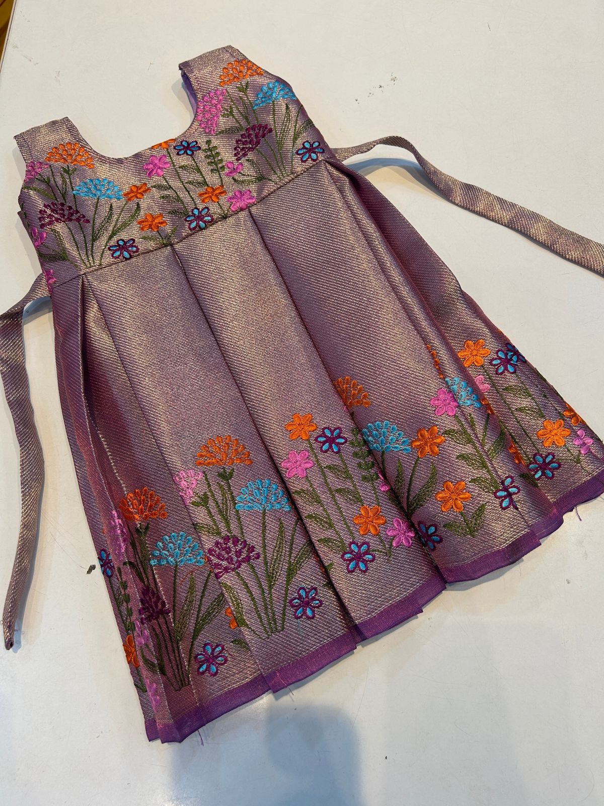 (SB455) Pookal - Embroidery Silk Gown Specially Curated for Newborns