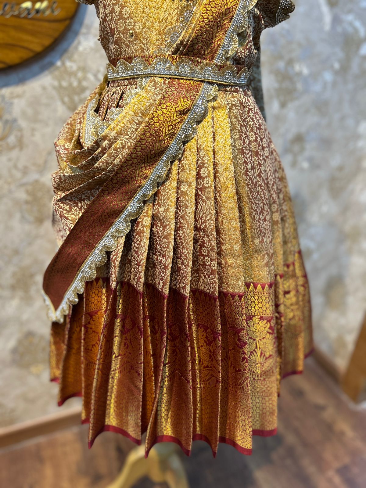 (SB464) Sindoor - Aari Worked Full Flow Shawl Kanchi Silk Gown