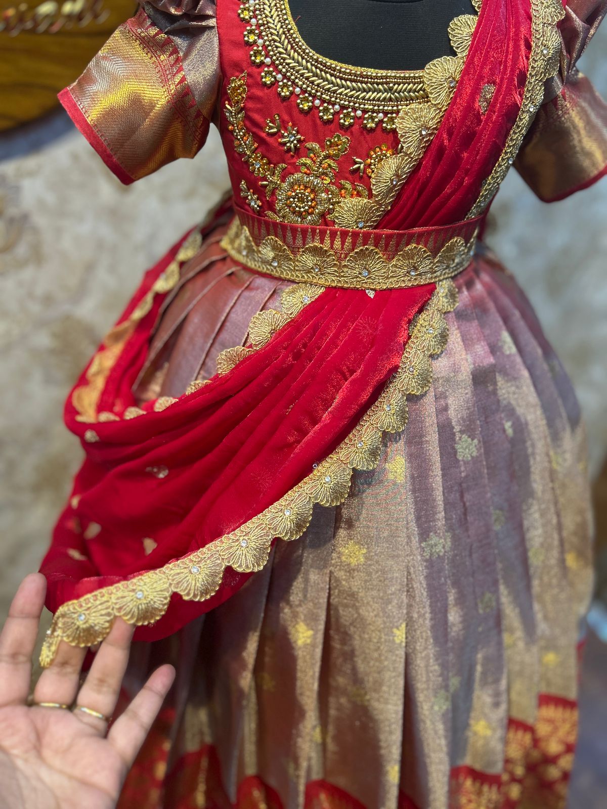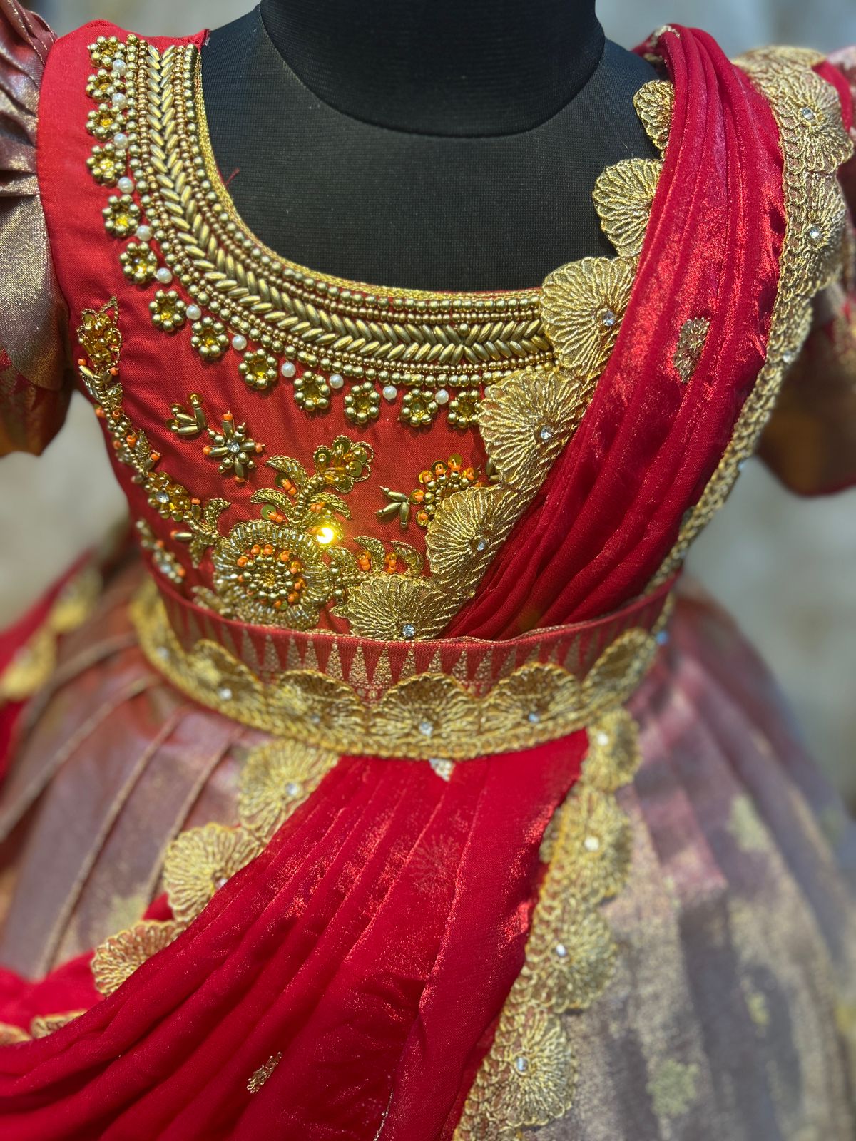 (SB479)Premium Sembarathi Originally Aari Worked Red Pattu Lehenga