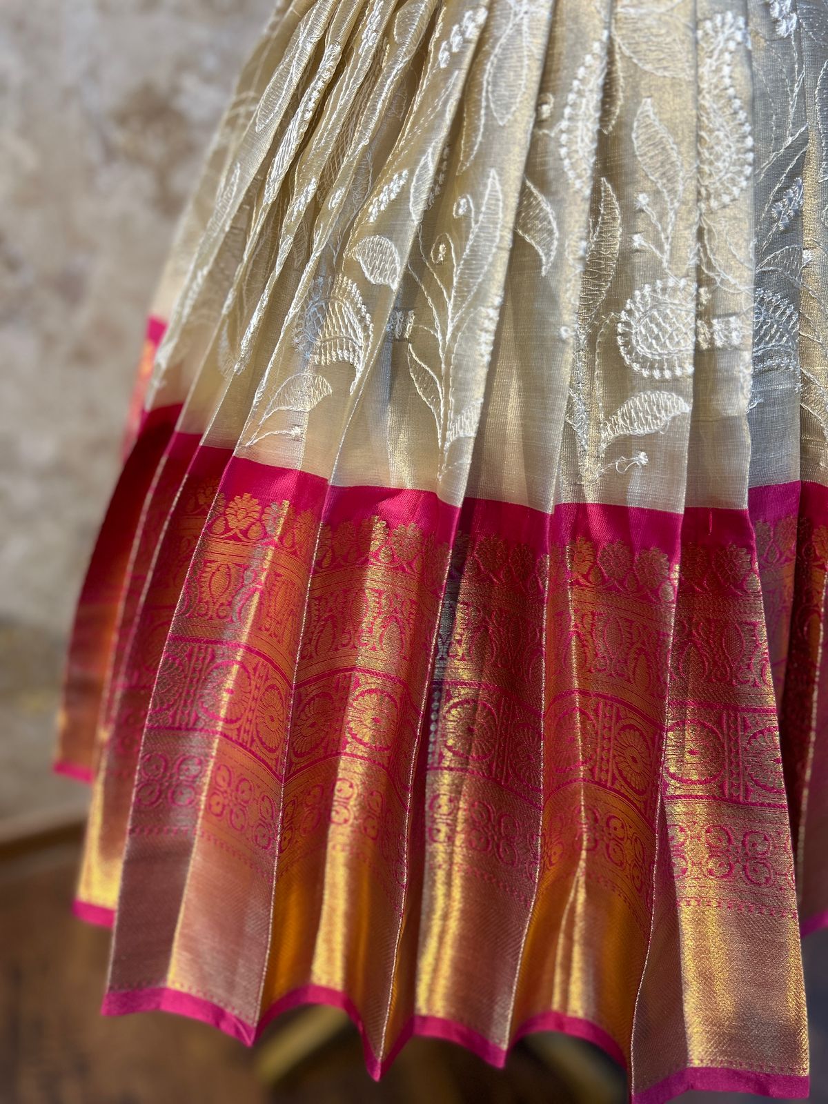 (SB488)Pink Silk Gown with Full Embroidery Bottom in Gadwal Silk